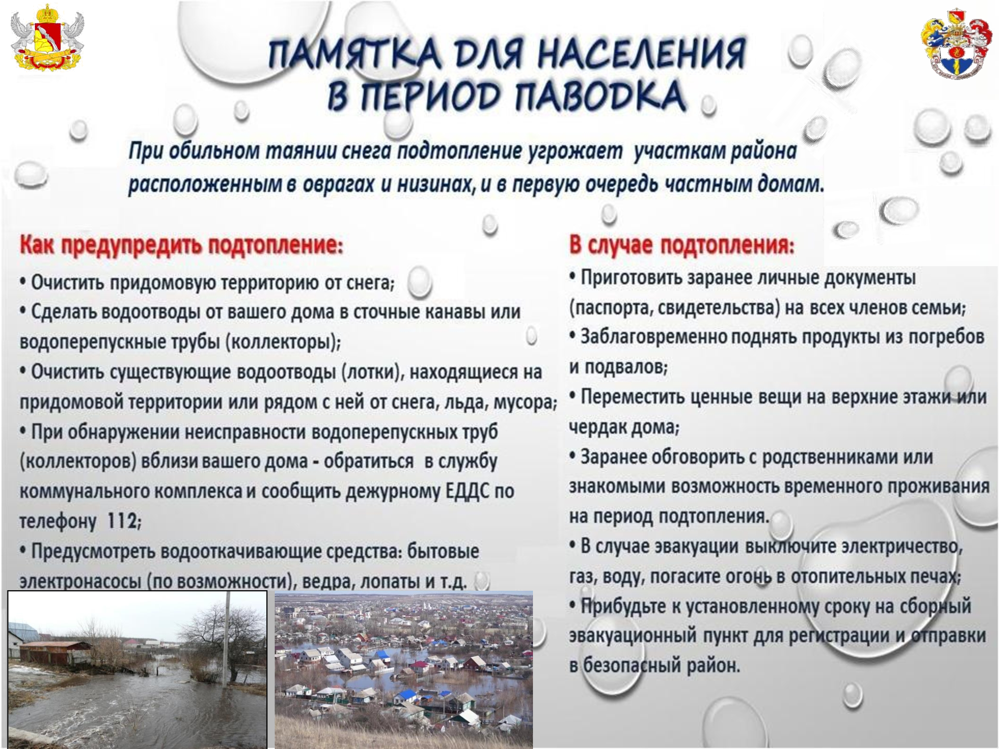 Памятка для населения в период паводка